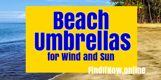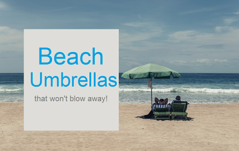 Top rated sturdy and heavy duty beach umbrellas that won't blow away in the wind and will protect you from the sun's UV rays. These umbrellas are specially designed to stay standing when gusts of wind come along but... they are easy to set up and are light enough to carry down to the beach.